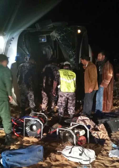 | 16 وفاة و34 إصابة بتدهور حافلة معتمرين فلسطينية بمعان |
