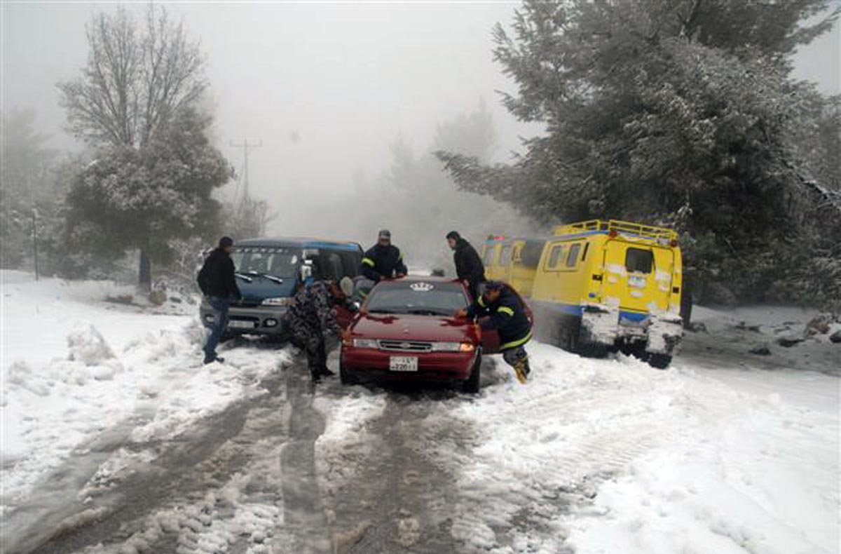 | انقاذ 5 أشخاص عالقين في الكرك بسبب الثلوج |