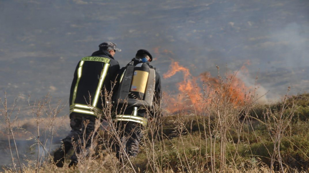 | حريق اعشاب على الشريط الحدودي غربي الأردن |
