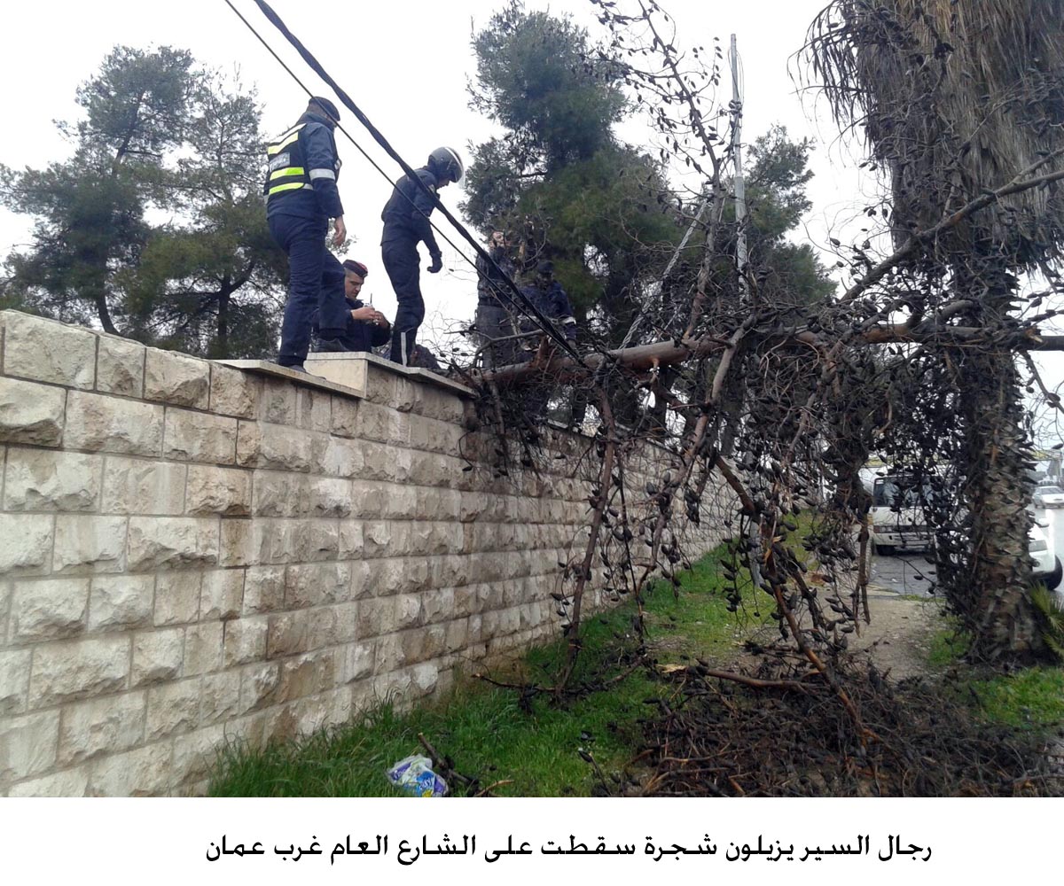 | رجال السير يزيلون شجرة سقطت على الشارع العام غرب عمان |
