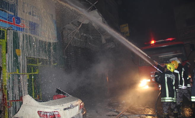| حريق ضخم يلتهم محلين ومخزن في القويسمة - صور |