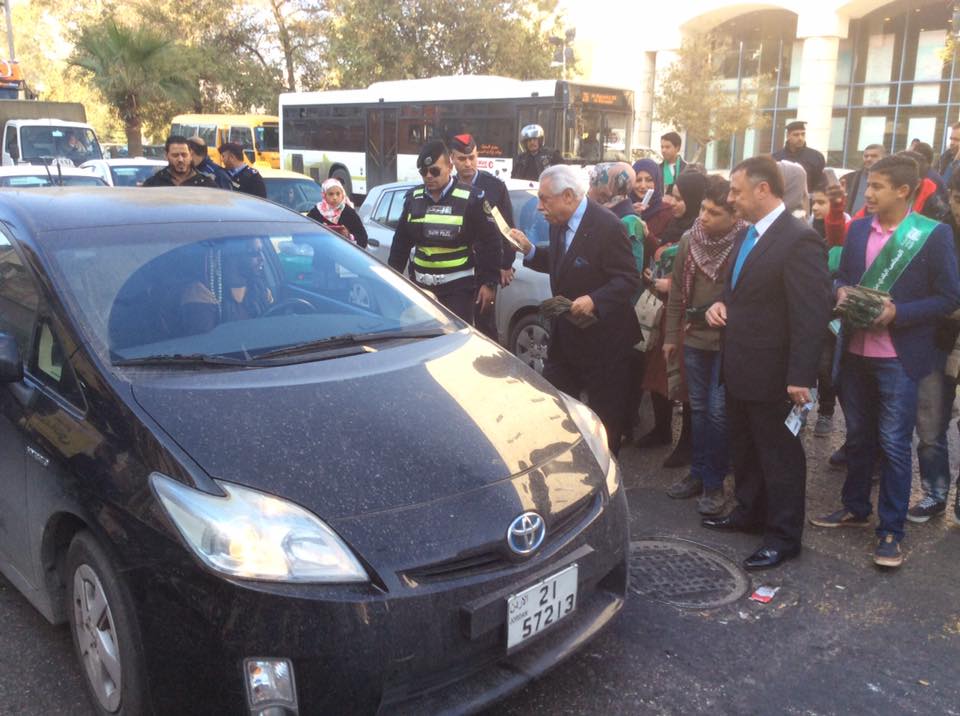 معالي امين عمان يطلق حملة توزيع أكياس النفايات على المركبات وذلك للحد من القاء النفايات من نوافذ المركبات ضمن مبادرة عمان بيتنا للسنة الخامسة . |