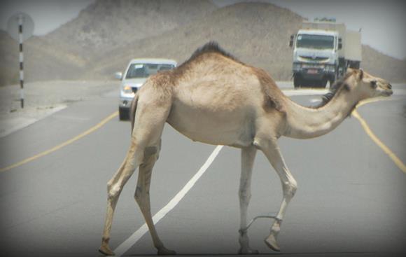 | نجاة عائلة من الموت بعد إصطدام مركبتهم "بجمل" على الطريق الصحراوي |