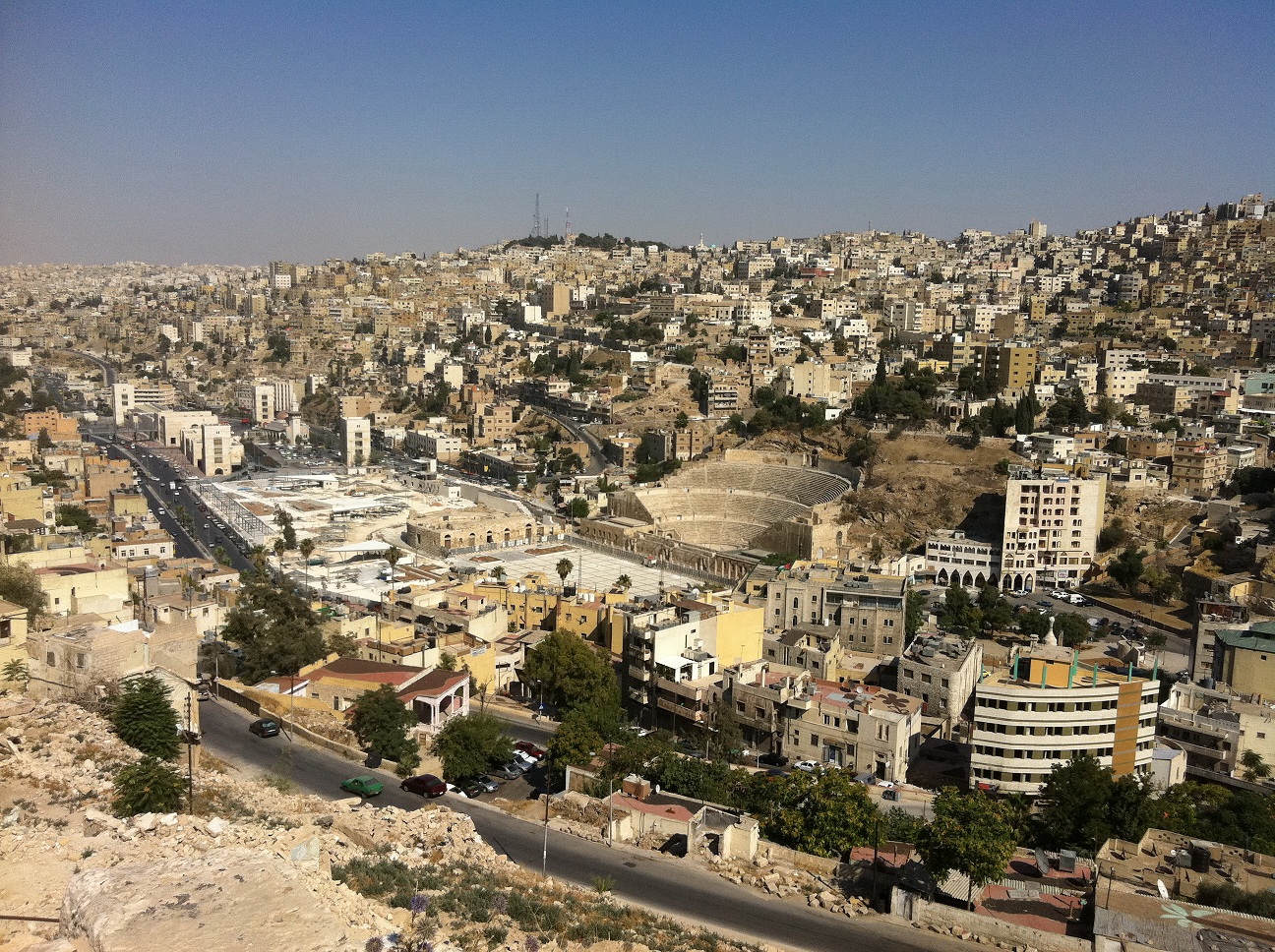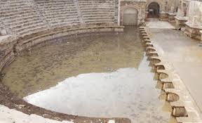 | الطين ومخلفات الأمطار والسيول تملأ المكان في المدرج الروماني وسط العاصمة_بالصور |