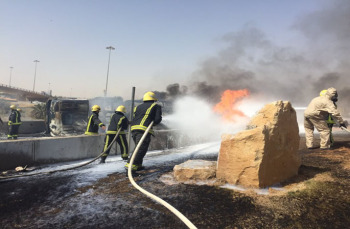 تعاملت كوادر الإطفاء والإسعاف في مديرية دفاع مدني العقبة مع حادث تدهور صهريج محمل بمادة البنزين تقدر حمولته بـ(40) طن واشتعاله بالكامل على الطريق الخلفي ، مما نتج عن... |