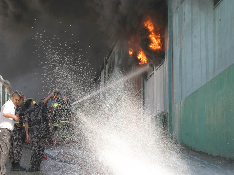 | حريق مستودع في المدينة الصناعية بالكرك |