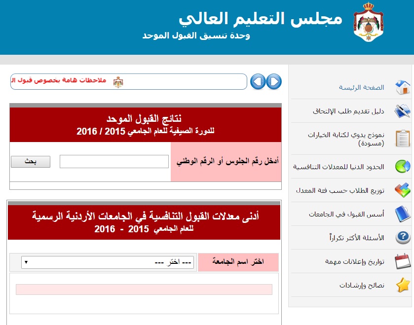 | إعلان نتائج القبول الموحد - رابط |