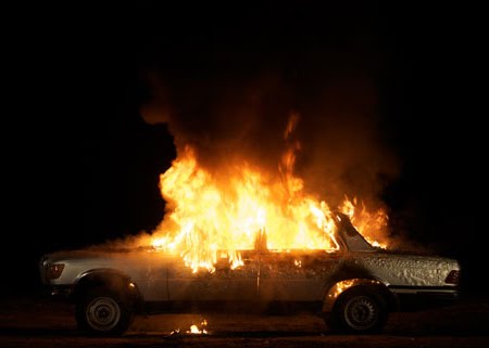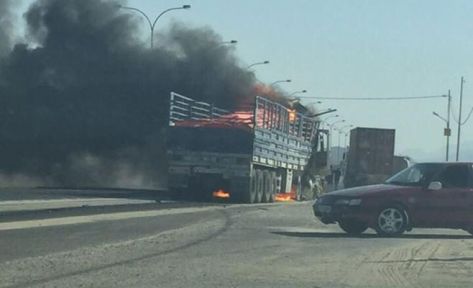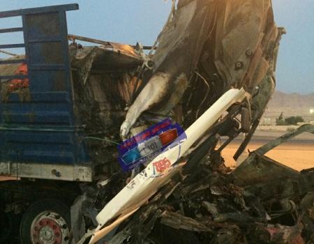 | وفاة بتصادم شاحنتي ''فوسفات'' واشتعال إحداهما |