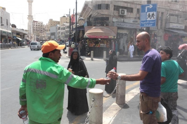 | رجال الامن توزع الماء البارد للمواطنين في اربد |