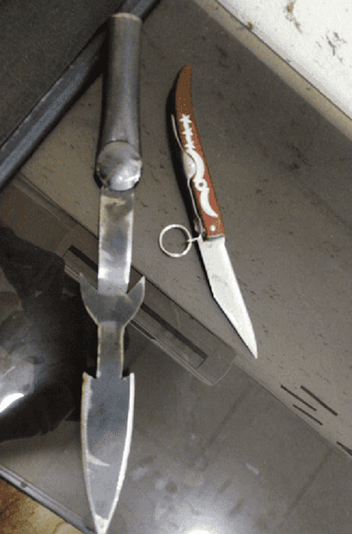 ضبطت الأجهزة الأمنية (موس واداة حادة مخرمة) بحوزة قاتل الشابين الحموري في محافظة اربد ووقعت مساء الاثنين جريمة قتل راح ضحيتها شابين واصابة والدهما في محافظة اربد بالقرب من... |