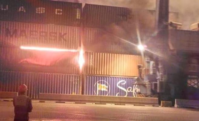 | بالصور : إندلاع حريق في ميناء حاويات العقبة |