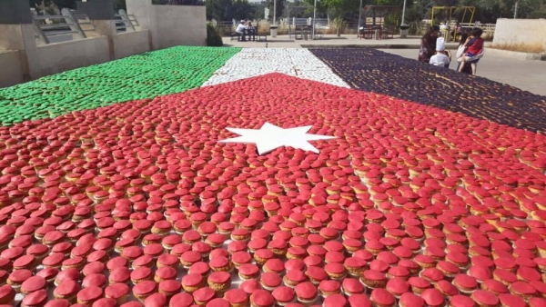| إحتفالا بالاستقلال .. العلم الاردني من 15 ألف قطعة حلوى |