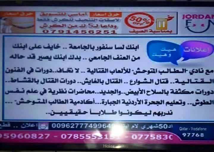 رصد عبدالجبار زيتون- استهجن ناشطون في مواقع التواصل الإجتماعي صورة لإعلان على أحد القنوات التلفزيونية المحلية لـ أكاديمية الطالب المتوحش كما جاء في الإعلان . |