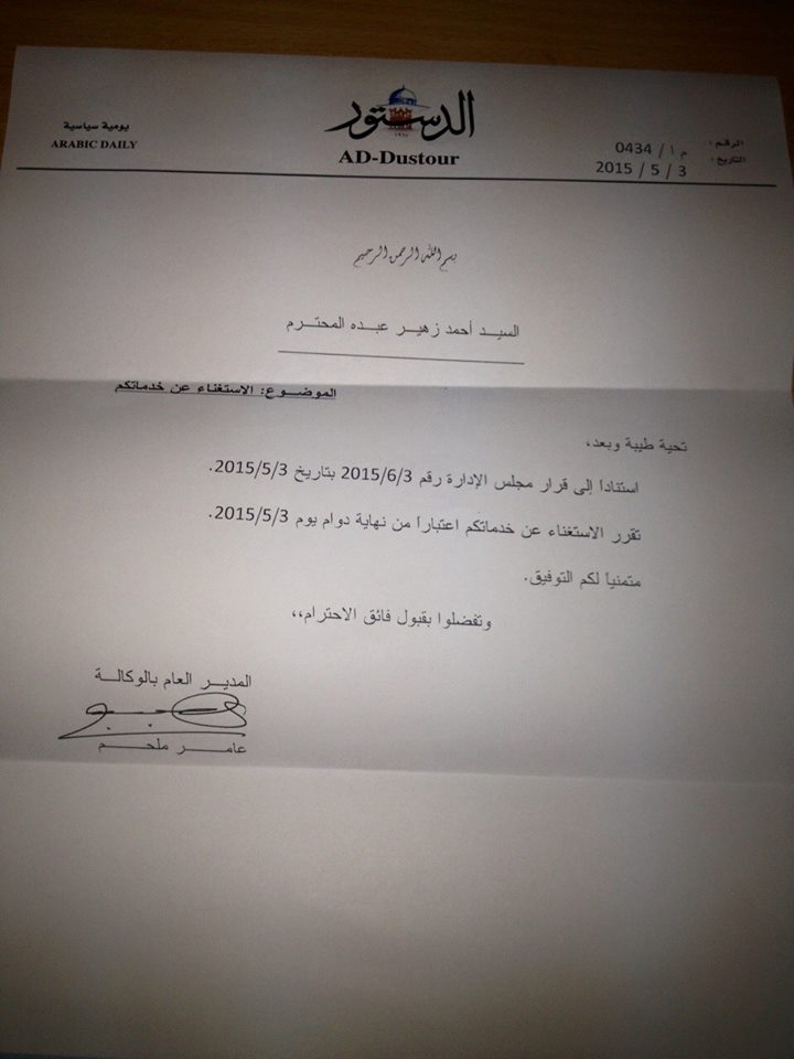 | ''الصحفيين'' ترفض قرارات إنهاء خدمات الزملاء في ''الدستور'' |