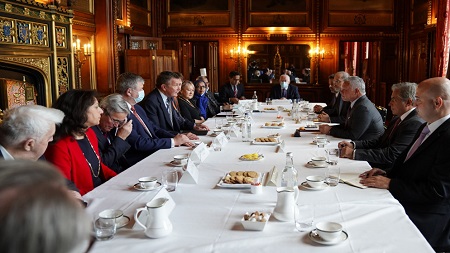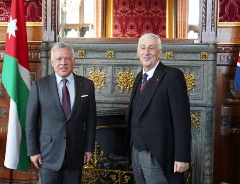 التقى الملك عبدالله الثاني اليوم الخميس، رئيس مجلس العموم البريطاني ليندسي هويل في قصر ويستمنستر في لندن. |