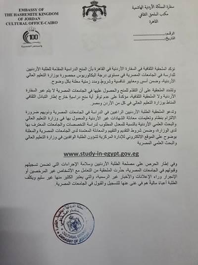 أكدت الملحقية الثقافية في السفارة الأردنية في القاهرة بأن المنح الدراسية المقدّمة للطلبة الأردنيين للدارسة في الجامعات المصرية في مستوى درجة البكالوريوس محصورة بوزارة... |