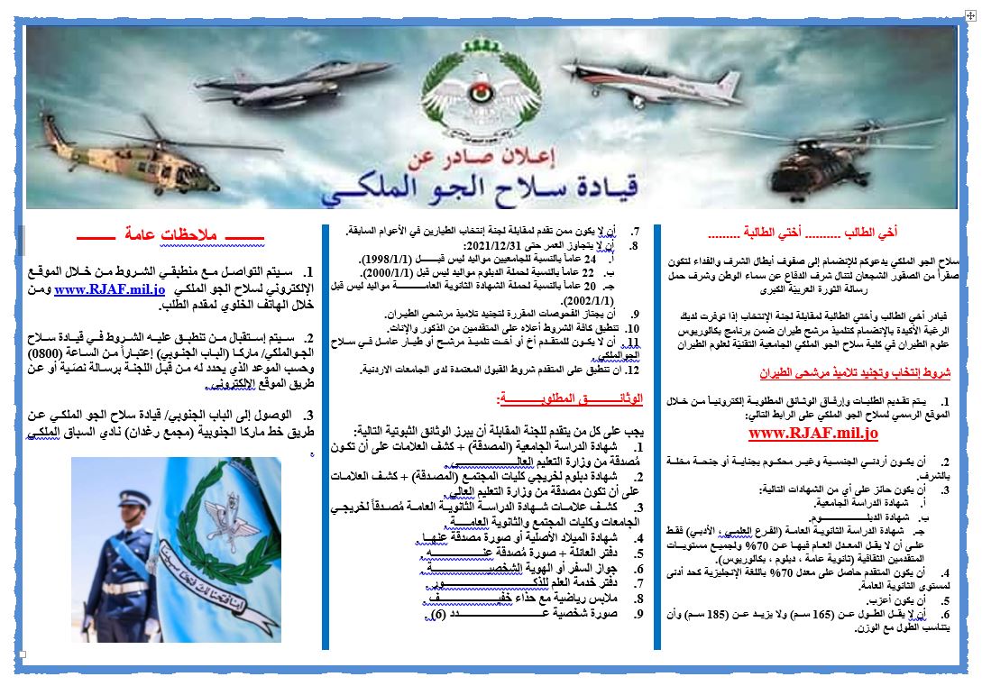| سلاح الجو الملكي يفتح باب التجنيد - تفاصيل |