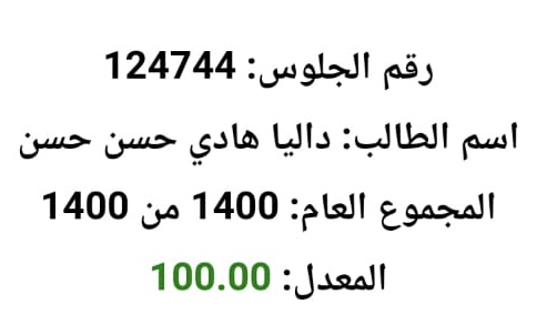 حصلت الطالبة المعيدة داليا هادي حسن حسن على معدل 100% في امتحان الثانوية العامة من الفرع العلمي.ورد وزير التربية محمد ابو قديس على سؤال لـأحداث اليوم بعدم وجود اسمها ضمن... |