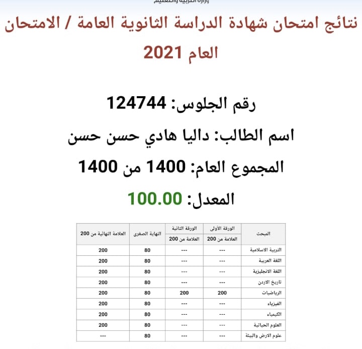 | اعلان نتائج التوجيهي لسنة 2021 - رابط |