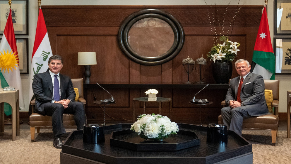 استقبل الملك عبدالله الثاني، في قصر الحسينية اليوم الأربعاء، رئيس إقليم كردستان العراق نيجيرفان بارزاني.واستعرض الملك وبارزاني، خلال اللقاء الذي حضره الأمير فيصل بن الحسين،... |