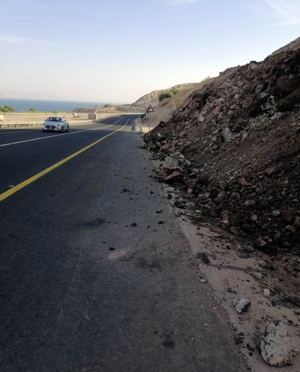 | انهيار ترابي بسيط قرب الطريق المحاذي للبحر الميت |