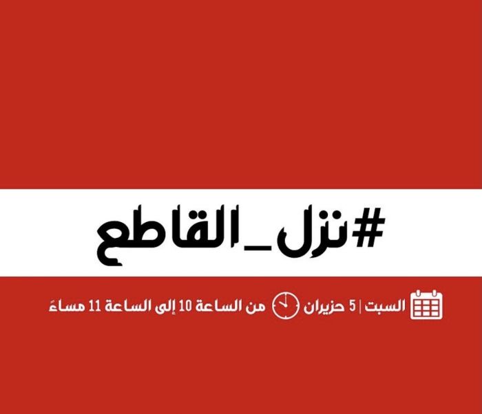 تنطلق في الساعة 10 من مساء اليوم حملة (نزل القاطع) والتي تهدف الى إطفاء الكهرباء عن المنازل ساعة واحدة، رفضا لاتفاقية الغاز الإسرائيلي.وكان وسم نزل_القاطع ووسم... |
