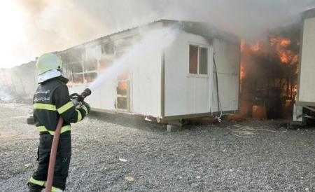 | اخماد حريق بكرفانين داخل مخيم الازرق |