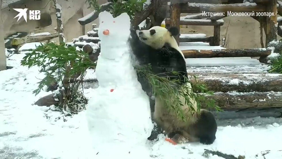 | دب باندا يهاجم رجلا ثلجيا في حديقة الحيوان بموسكو - فيديو |
