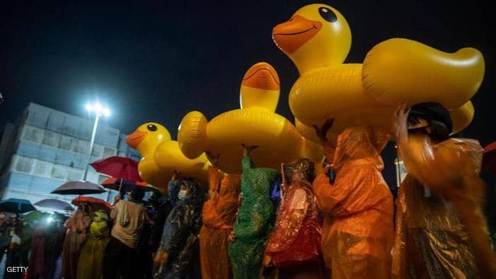 | البطة الصفراء تجتاح شوارع تايلاند .. وتتحول لرمز للاحتجاجات |