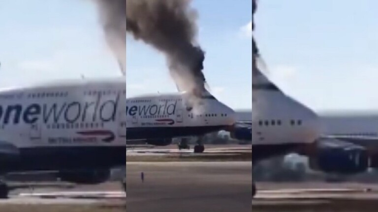 | اندلاع حريق بطائرة بريطانية في إسبانيا - فيديو |