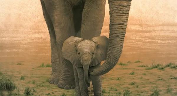 | فيل ينقذ صغيره من الغرق بخرطومه - فيديو |