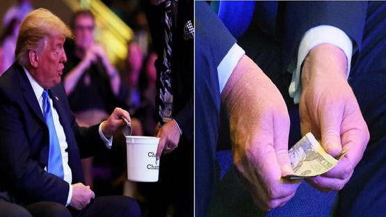 رصدت الكاميرات الرئيس الأمريكي دونالد ترامب خلال تبرعه بمبلغ من المال أثناء زيارته للكنيسة الدولية في لاس فيغاس، يوم الأحد.وخلال ظهوره الثالث في الكنيسة، سحب ترامب ما بدا... |