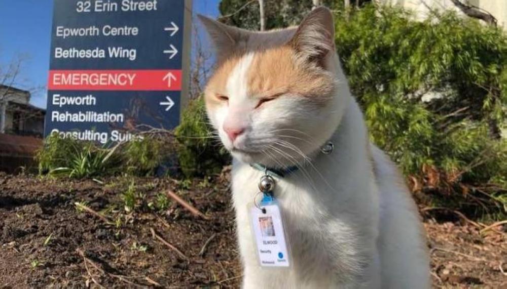| تعيين قط بوظيفة حارس أمن في مستشفى |