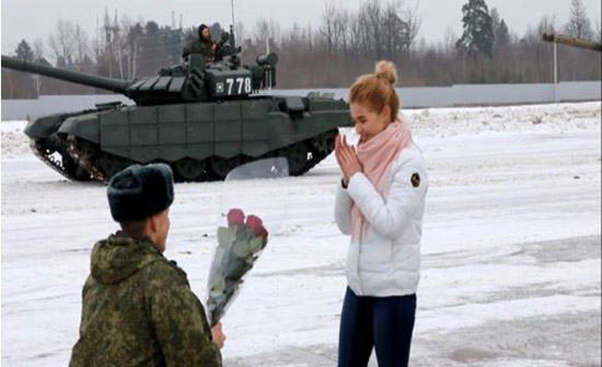 | ضابط روسي يطلب يد حبيبته بـ16 دبابة - فيديو |