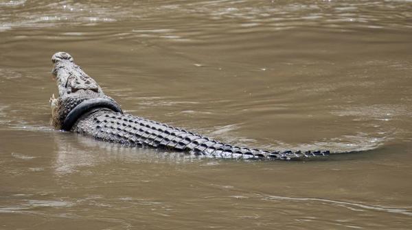 | مكافأة لمن يزيل إطارا من عنق تمساح بإندونيسيا |