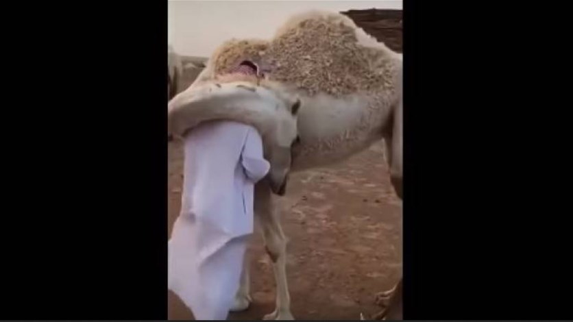 | حب ناقة لمالكها يشعل الإنترنت .. تعانقه يوميا - فيديو |