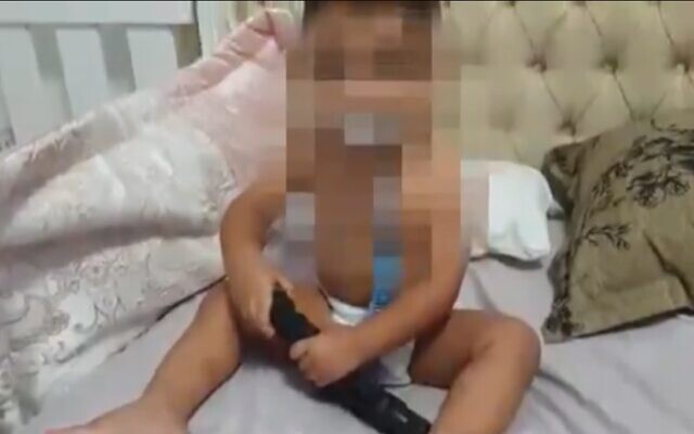 | رضيع يلهو بمسدس حقيقي محشو بالرصاص - فيديو |