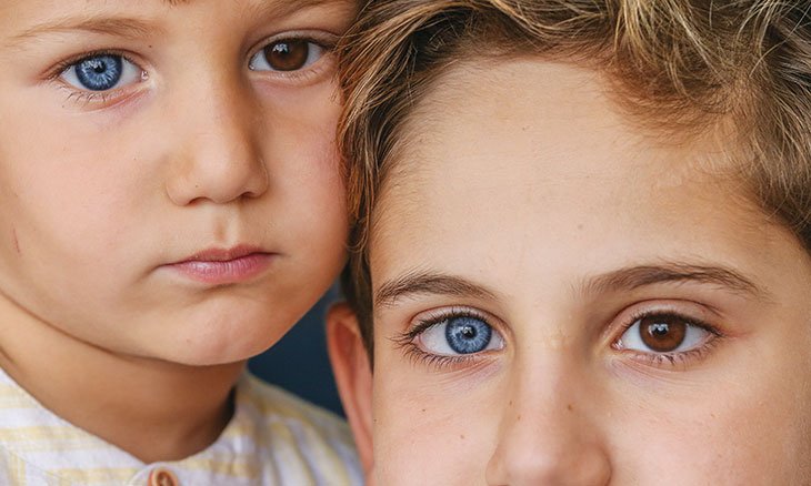 | شقيقان لكل منهما عين زرقاء وأخرى بُنية |
