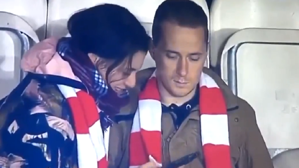 | مقطع طريف لشاب وصديقته خلال مباراة كرة قدم - فيديو |