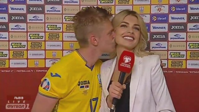 | لاعب كرة قدم يقبّل مذيعة على الهواء احتفالاً بفوز فريقه - فيديو |