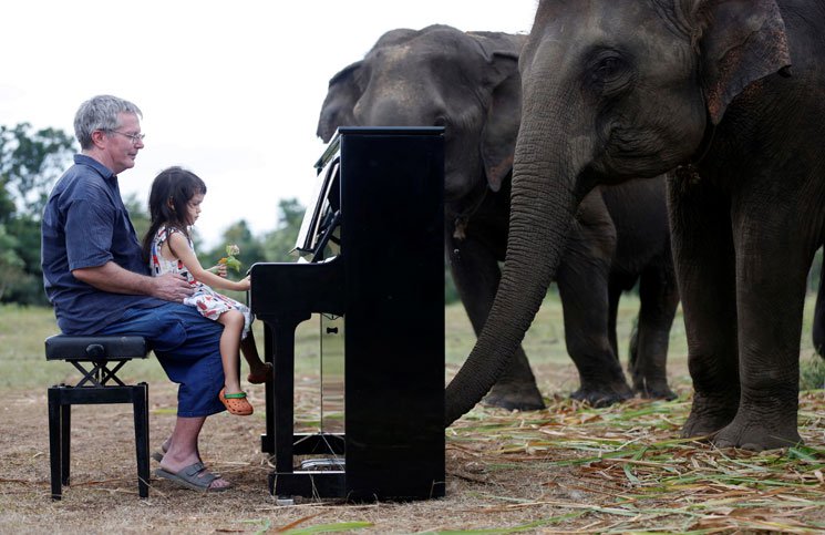 المتطوع البريطاني بول بارتون يعزف على البيانو للفيلة المريضة التي تم إنقاذها ووضعها في الحضانة على طول الحدود بين تايلاند وميانمار. بول يلعب البيانو للفيلة كمتطوع لمدة تقرب... |