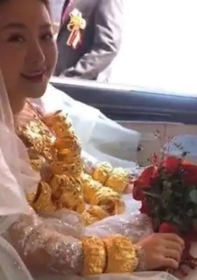 | عروس ترتدي 60 كيلوغراما من الذهب يوم زفافها |