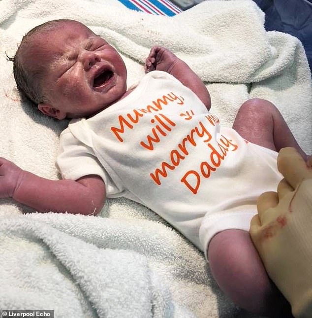 | رجل يطلب يد حبيبته بعد وضعها طفلهما الاول |