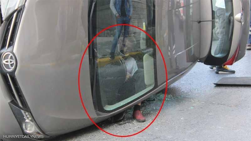 وجد رجل تركي نفسه عالقا داخل سيارته في وضعية غريبة إثر حادث مروري في مدينة إسطنبول، الأمر الذي أثار استغراب المارة، ورواد مواقع التواصل الاجتماعي، بعد انتشار صورته.ونجا... |