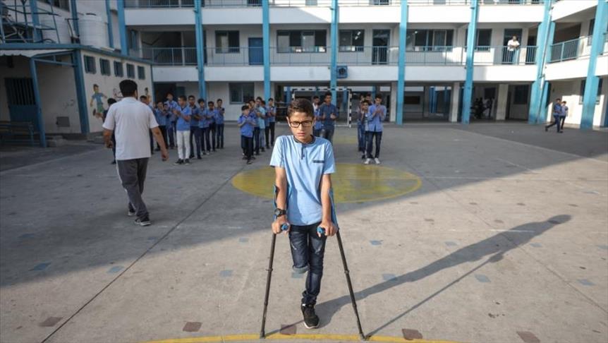 | بساق واحدة فتى من غزة يبدأ عامه الدراسي |