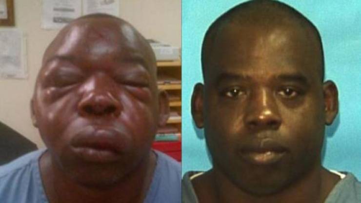 تظهر صورة نشرتها الشرطة الأميركية رجلاً من ذوي البشرة السوداء تعرض للضرب لأنه يريد الارتباط بامرأة بيضاء.وتعرض دارين غلوفر البالغ من العمر 44 عاماً للضرب، بعد أن قرر الزواج... |