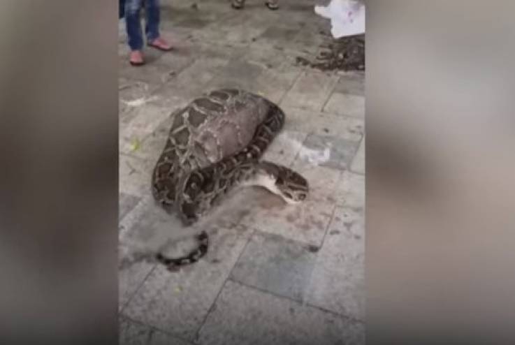 | فيديو| موت ثعبان أثناء محاولته هضم ماعز! |