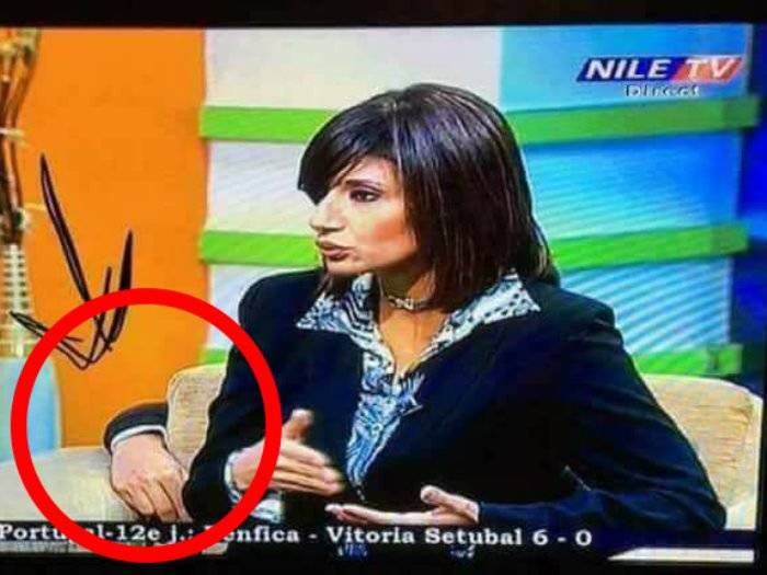 | يد ظهرت خلف المذيعة خلال البث المباشر |