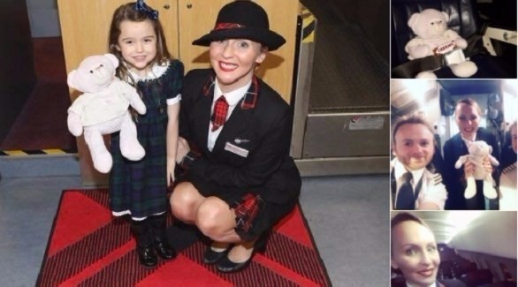 قامت شركة طيران اسكتلندية بالمساهمة في جمع شمل طفلة مع دمية دب فقدتها في وقت سابق، عبر إرسال الدمية على متن رحلة من الدرجة الأولى.ونشر أحد موظفي شركة طيران اسكتلندية صوراً... |