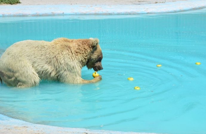 أعدت بلدية “قراطاي” بولاية قونيا التركية، نوافير خاصة وفاكهة مثلجة بحديقة حيوانات تابعة لها، للتخفيف عن الحيوانات التي تأثرت من ارتفاع درجات الحرارة.وذكر بيان صادر عن... |